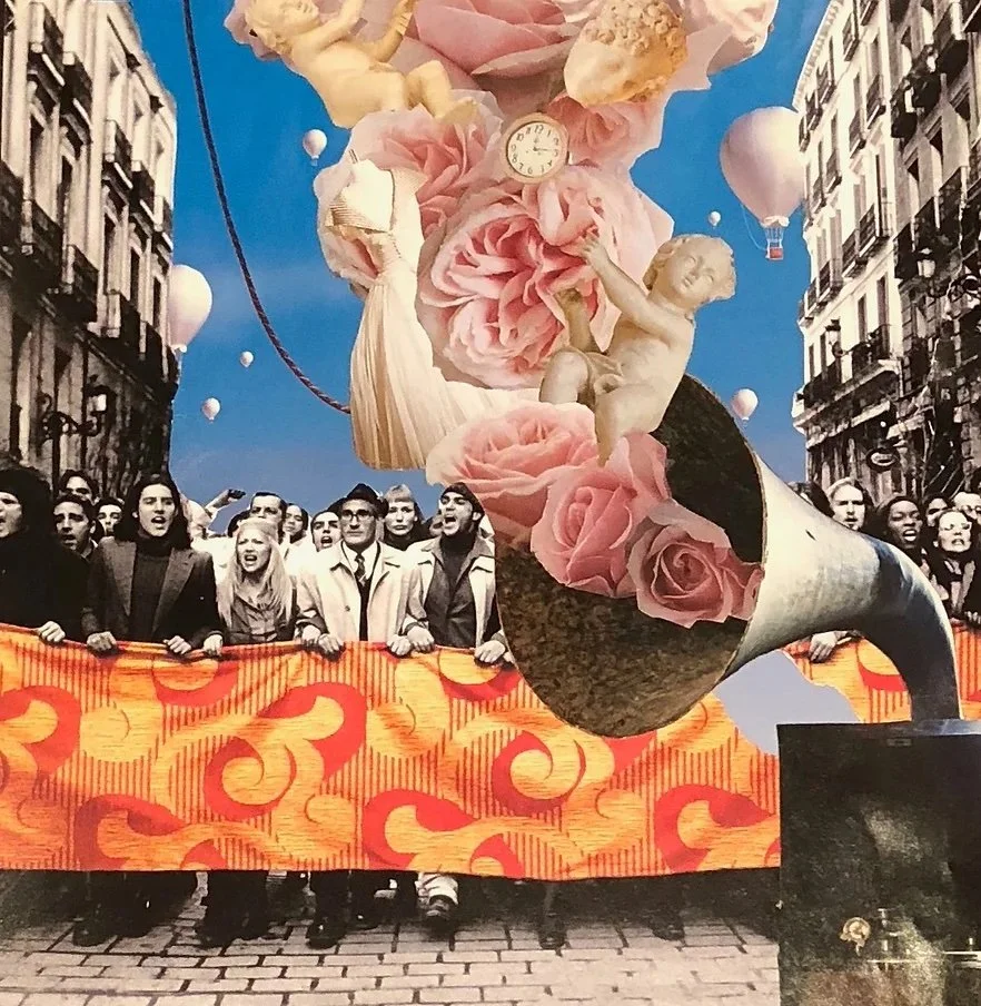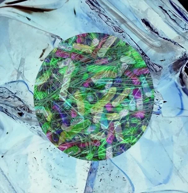 I made this image using photographs I took of sprinkles and grass for the inner texture, and ice cubes for the surrounding texture.